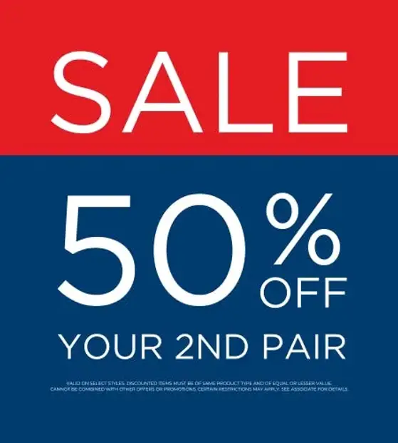 VALID ON SELECT STYLES. DISCOUNTED ITEMS MUST BE OF SAME PRODUCT TYPE AND OF EQUAL OR LESSER VALUE. CANNOT BE COMBINED WITH OTHER OFFERS OR PROMOTIONS. CERTAIN RESTRICTIONS MAY APPLY. SEE ASSOCIATE FOR DETAILS.